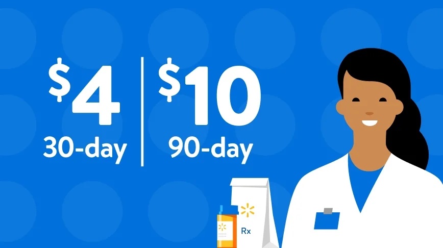 Walmart's $4 Plan can be used to get cheap generic prescription medications for common health conditions.